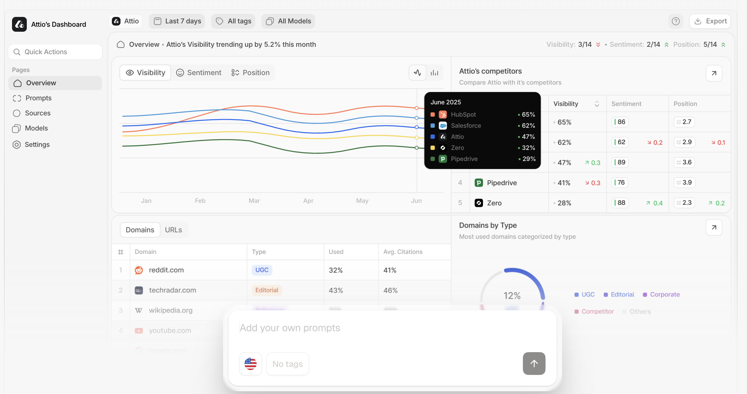 - Provides sentiment analysis (positive, neutral, negative) for AI answers.