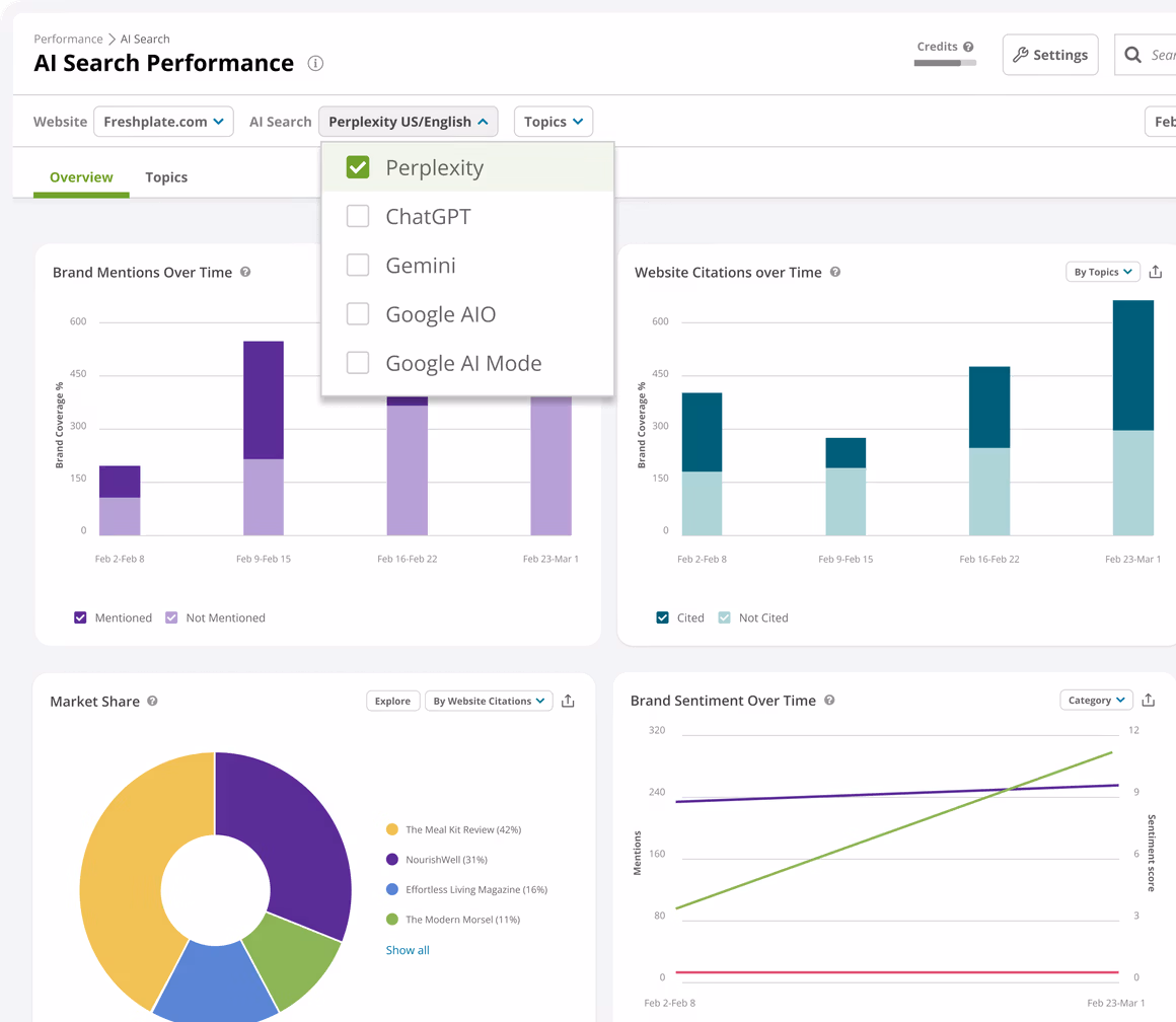 - AI / LLM coverage: Perplexity, ChatGPT, Claude.