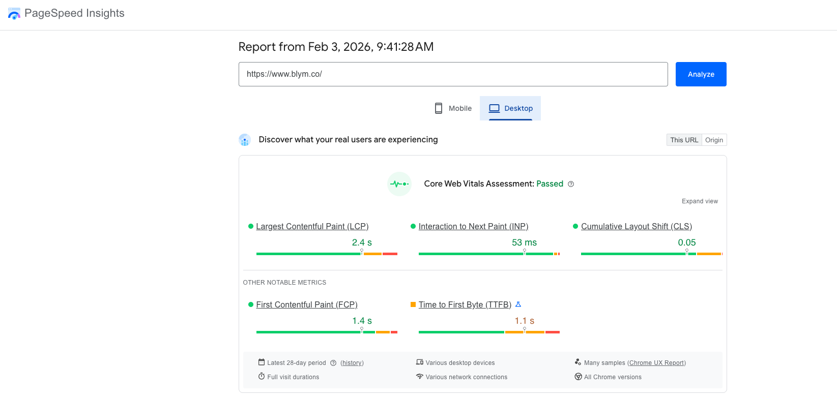 - Traffic source breakdown (Direct, Search, Social).
