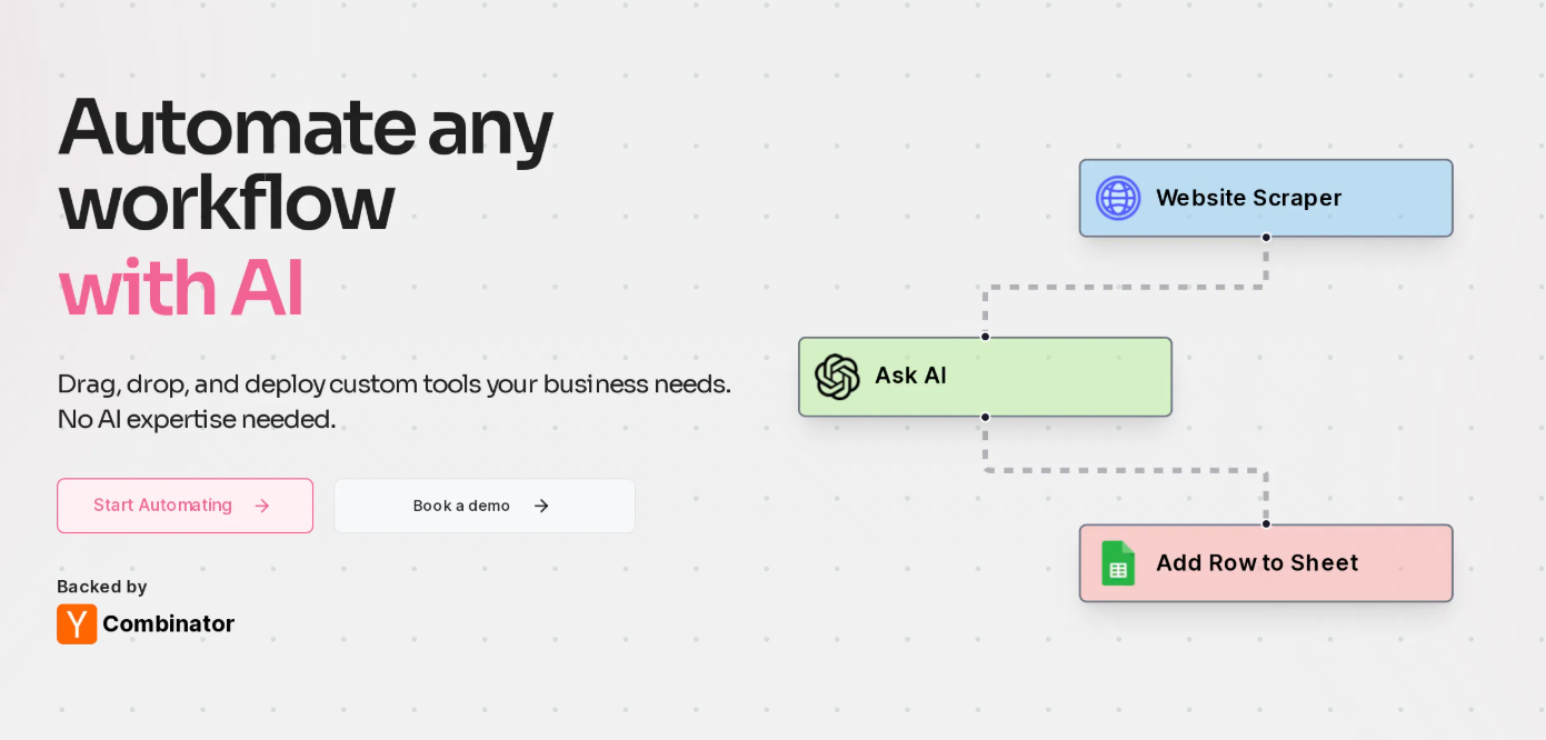 A no-code platform that lets you build custom AI workflows by dragging and dropping nodes.